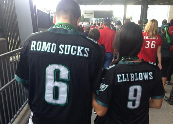 October 22, 20213 yr Clicked a few links in the article and eventually wound up with this: https://larrybrownsports.com/football/eagles-fans-wear-romo-sucks-and-eli-blows-jerseys/246251