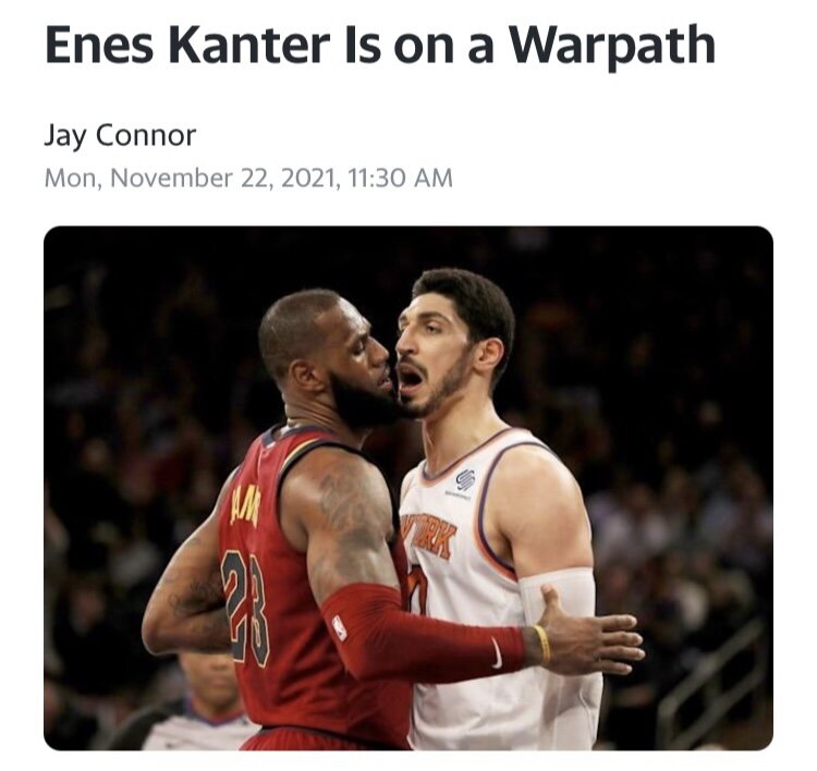 December 1, 20214 yr 7 hours ago, Kz! said: Yeah, I'm all for bullying LeBron James as much as possible, but I just can't really find much enthusiasm behind Kanter's whole anti-China tirade. He's kind of obnoxious, honestly. It’s not a "tirade.” He’s just been stating facts and wearing the shoes. Outlets like CNN have used words similar to tirade in what seems to be an attempt to discredit his message. I took a screenshot of an example of this very thing a few weeks ago. I’ll see if I can find it. EDIT: I took a screenshot of a Yahoo article after also being disgusted by a CNN headline. Here it is: