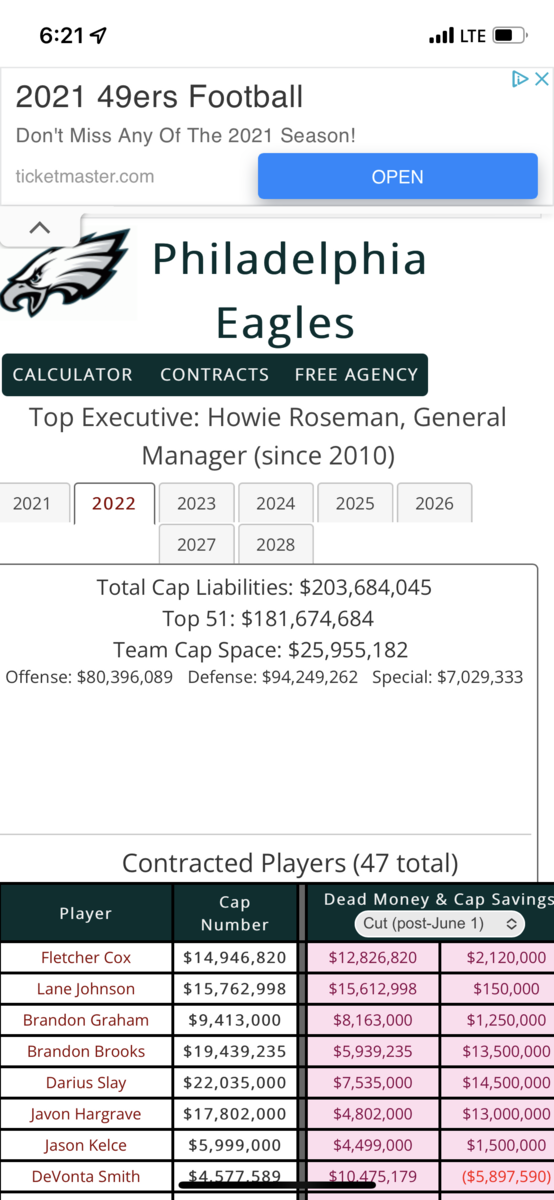 November 20, 20213 yr 1 minute ago, Swoop said: Okay, so 39 million by doing that with Brooks. Now you can remove 15 for Goedert, the roughly 15 for our first rounders alone and the 2 million increase for Mailata. Now we're down to 7 and have 19 players heading to free agency that will either need to be resigned or replaced. The cap is an issue. It’s not. Stop acting like it is set in stone. We’ll kick it down the road, and it will keep rising like never before the next years anyways.