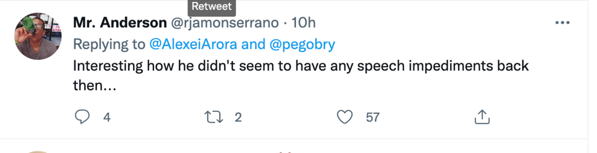 March 8, 20223 yr 1 hour ago, Procus said: Here's a clip of Uncle Joe from 1997: I mean, there's absolutely zero context given for this, but ok. This was from 25 years ago, this somehow justifies Putin? Also, lol at the comments, particularly this guy That's really funny, because as I was watching the video I was thinking about how you definitely do still notice it back then, it's just less pronounced. This commenter is just a moron. Biden stammers at around the 13s mark and you can hear him slur a little bit. You can kind of notice in his jaw movements that he has difficulties forming some sounds. He seems to talk out of the side of his mouth a lot.