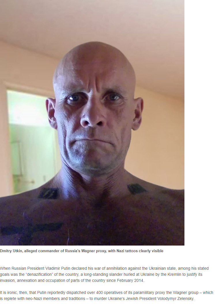 March 17, 20223 yr Fact: Western Ukraine sided with the Not-zzz in WWII and was responsible for the death of many Jews Fact: the leader of Ukrainian Not-zzz during WWII is a hero to western Ukrainians- they built statues to Banderas. Not-zzz serve in the Ukrainian military TODAY! Fact: the U.S. is training, equipping and funding actual Not-zzz in Ukraine TODAY! Posting a pic of some guy with Not-z tattoos and smearing Russia as Not-z is a pathetic attempt to obscure the truth.