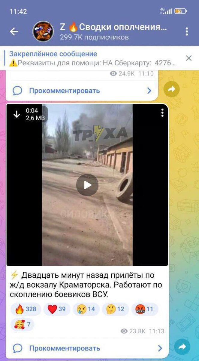 April 8, 20223 yr Translation: "Hitting the Kramatorsk railway station, 20 minutes ago. Working on the positions of AFU belligerents" Hitting a train station civilians are trying to use to escape. Evil.