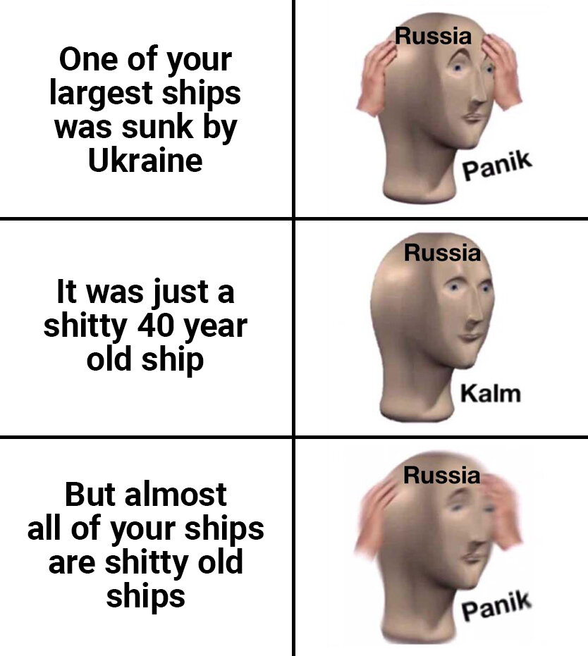 April 16, 20223 yr 1 hour ago, JohnSnowsHair said: Abra be like "that was a strategic sacrifice". Ukraine may have taken out a warship, but Russia took out 2 Ukrainian anti ship missiles.