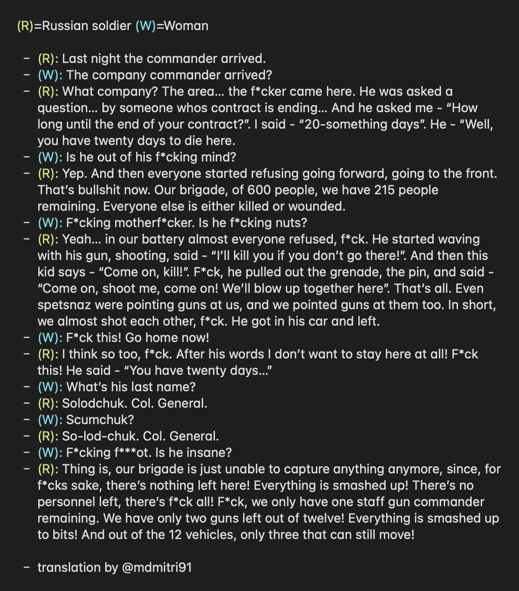 May 31, 20223 yr Intercepted audio shows Russian soldiers almost blew up a top general for ordering them to the front line, Ukraine says