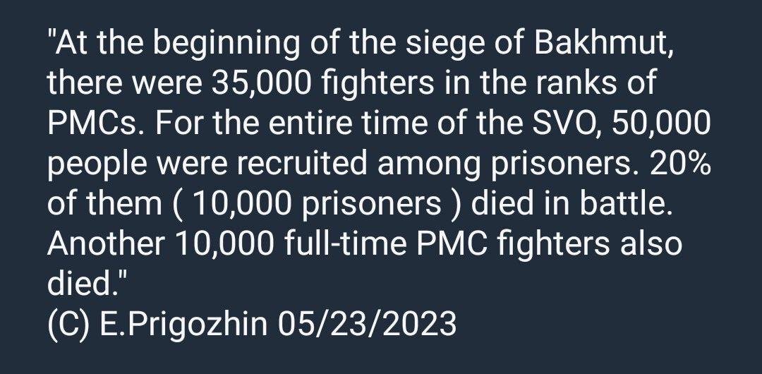 May 24, 20232 yr Right from Prigozhin's mouth. Tens of thousands dead for Bakhmut. A defendable crossroad town whose strategic value was greatly diminished following Ukraine's Kharkiv offensive.