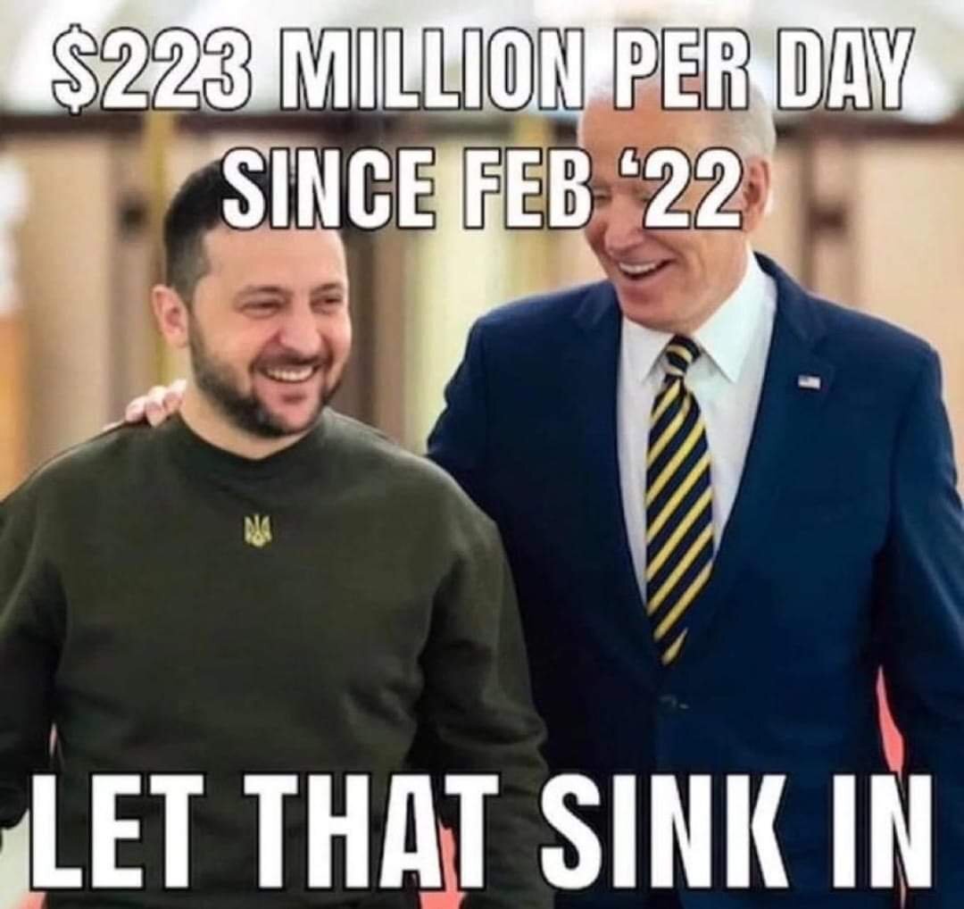 October 3, 20232 yr Just now, Mike31mt said: Well it depends on the timeline of the meme but its at least $75B in total. Feb '22 was about 600 days ago. So we're down to a super efficient $125M per day now. 4 minutes ago, paco said: What was bought with the $ amount you are quoting?