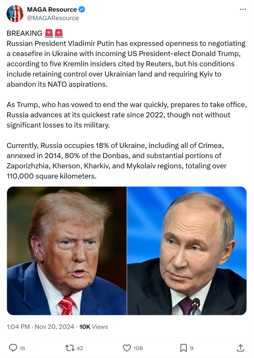 November 21, 20241 yr On 11/19/2024 at 3:22 PM, Procus said: Kind of difficult to do so when the lame duck administration is doing everything in its power to ramp things up there. Biden gave him more than 24 hours. He didn't get it done, so its time to kick things up a notch.
