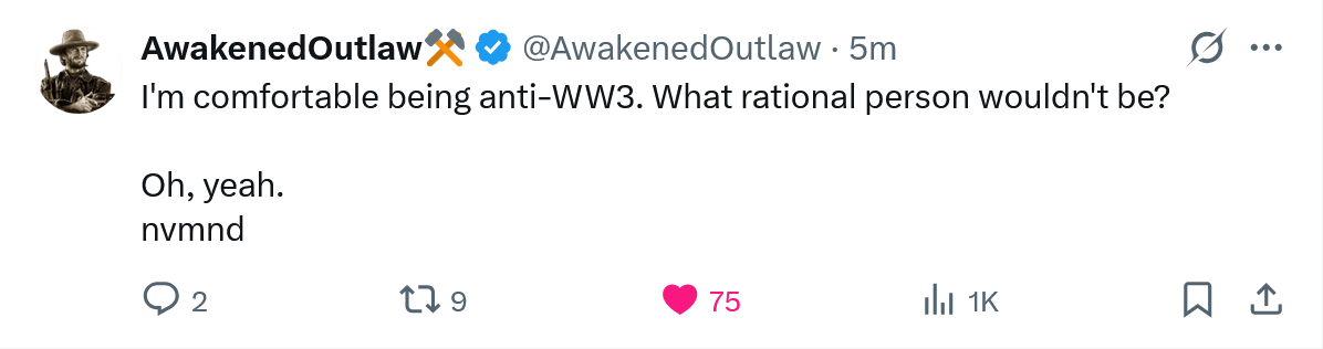 March 1, 2025Mar 1 34 minutes ago, Bill said: Yeah if you think only one domino is going to tip at once you have no idea what you’re talking about. Control of the Strait is key, Bill. China can't control it from one side. So, China will focus their efforts on that and limiting US force projection to stop it.