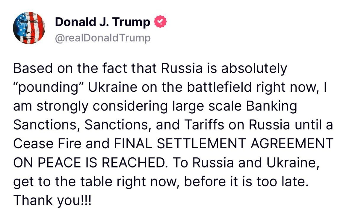 March 7, 2025Mar 7 Increasing sanctions to achieve a cease fire implies that a cease fire will bring sanctions relief. I wonder what Russia is going to use that for.