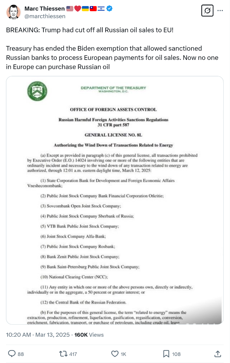 March 13Mar 13 Let's see how this latest phase ends. My guess is that Trump/Putin say something like "we have a peace deal ready but we must hold elections in Ukraine first". Whatever they end with the message will no doubt put the blame on Zelensky. If we look back in time, I don't think there is a coincidence between Trump pulling the intelligence and Russia gaining control back in Kursk.