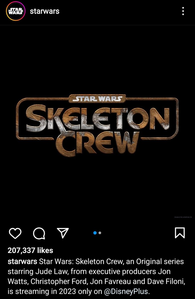 May 27, 20223 yr 1 hour ago, NOTW said: Jude Law will star in a new Disney+ series set in the galaxy far, far away, opposite a group of four lost children trying to make their way back to their home planet. The show, titled Skeleton Crew, was formally announced Thursday at the Star Wars Celebration fan event in Anaheim. Vanity Fair's recent cover story, Star Wars: The Rebellion Will Be Televised, revealed that it was being executive produced by director Jon Watts and writer Chris Ford, who worked together on Spider-Man: Homecoming for Marvel. "It’s the story about a group of kids, about 10 years old, from a tiny little planet who accidentally get lost in the Star Wars galaxy,” Watts told the crowd. "It’s the story of their journey trying to find their way home.”