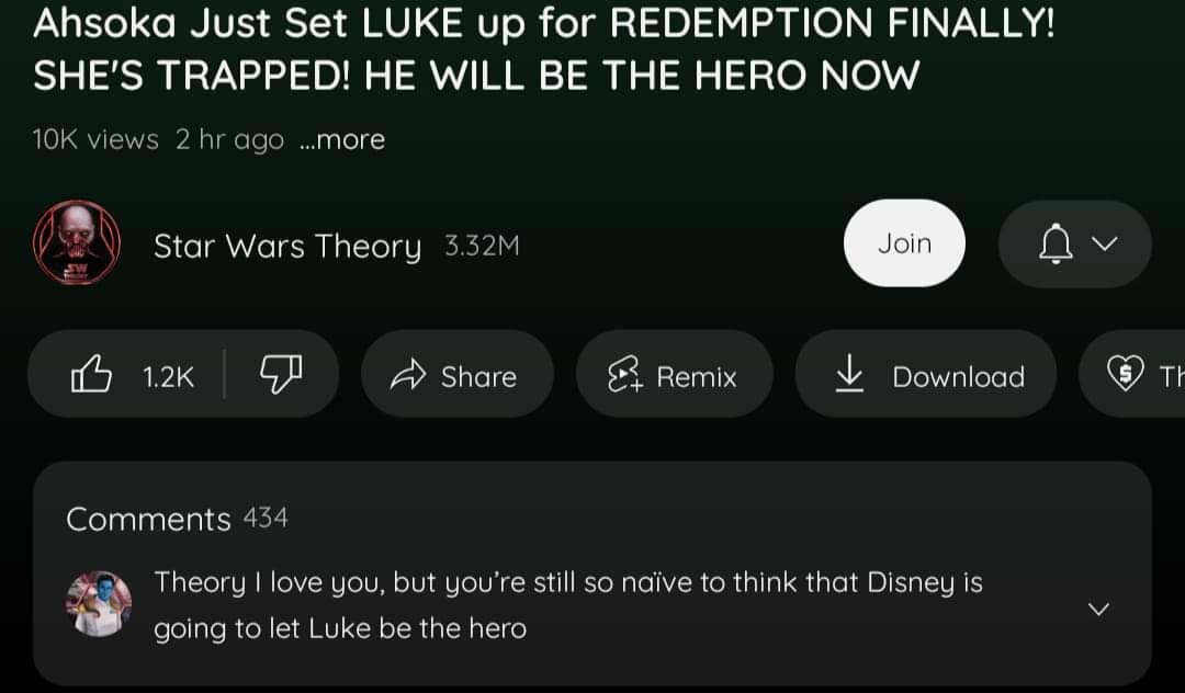 October 17, 20232 yr On 10/15/2023 at 2:14 AM, NOTW said: If it was Anakin,then it's more likely, but still never gonna happen. Even Kanaan is more likely than Luke
