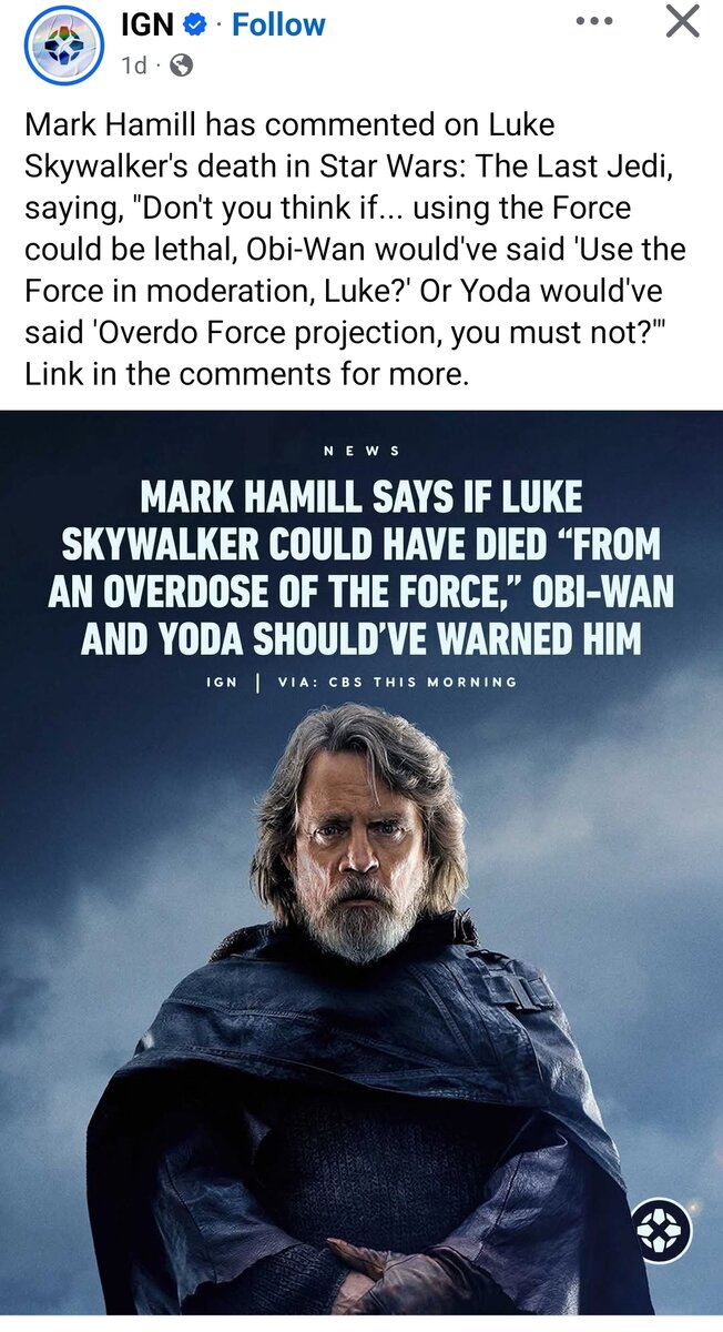 December 20, 2025Dec 20 Author Comments are debating Hamill, saying Luke willingly gave up his life. Nevertheless, I think it’s funny Hamill is still shitting on the sequels 🤣