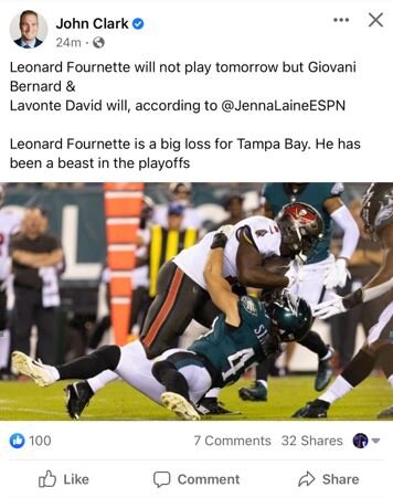 January 15, 20223 yr No Fournette tomorrow, but Gio Bernard and Lavonte David will be active. So RBs for them will be Vaughn, Bell and Bernard.