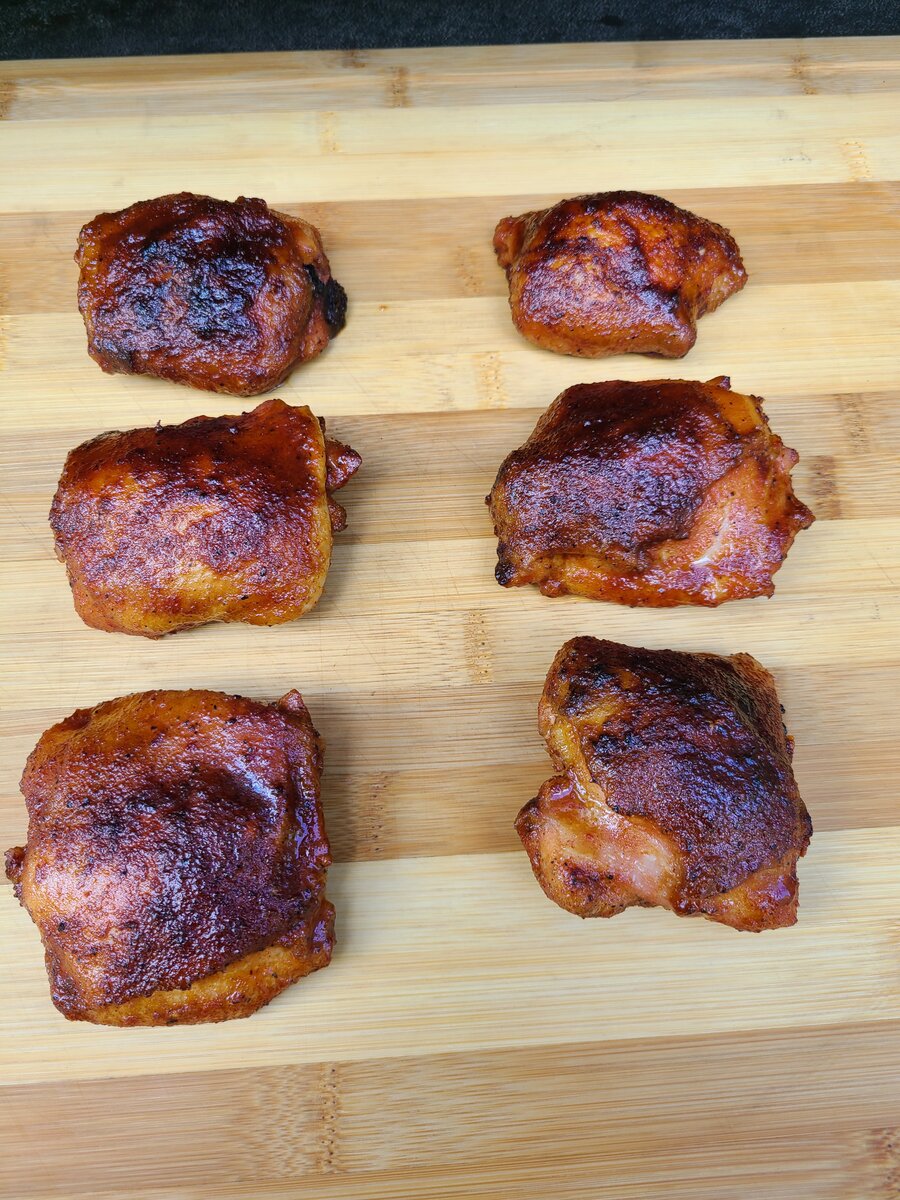 July 11, 20223 yr Did my first practice run for competition chicken thighs today. Turned out good but I'm still working on getting the skins right. At least I've got a whole year to figure out out.... Wings too