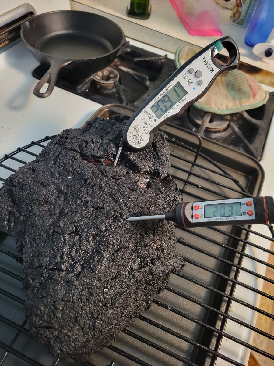 September 4, 20223 yr Holy hell, that took forever! 20.5 hours to be precise. I am never smoking at that low of a temperature again. I'm not dipping below 250 next time. I eventually just cranked it close to 300 degrees for the final hour or so. Temp readings were kind of weird, because I finally got to 203, but the thicker spot was at 209. Doesn't make much sense and hope I didn't dry it out, but im optimistic. Gonna go to bed and pull this bad boy in a couple hours.