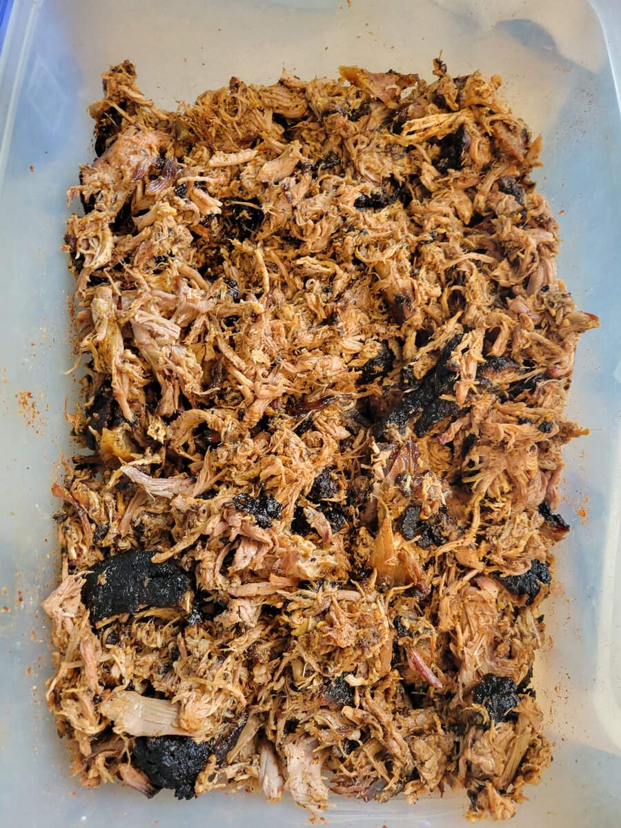 September 4, 20223 yr 9 hours ago, nipples said: Honestly mine almost always take that long. I always smoke at 220. Just seems to be a much better texture than when I crank the temps higher. Although my mental math was way off yesterday and I put it in a few hours too early. Now I need to figure out whether I try to hold this thing for 6-7 hours (it’s a 10 pounder) or just rest for an hour, pull, then reheat before everyone shows up. Or I could pull it, put it in a roasting pan covered with foil and keep it in the oven at a low temp to just keep it warm Yeah, this stuff looks great. Mightve been worth the wait. It's pulling perfectly. What I'm gonna do is serve this up later using some of these juices to just warm it up real quick on the stove top. When it finished cooking, I poured off the liquid remnants of the water pan, and I also got this water in jars that had the smoking wood soaking in it all day. I'll mix the two together, along with some leftover rub, get it nice and hot, then you can just douse the meat in the juice for a good 30 seconds and strain with a slotted spoon It'll be hot, juicy, and flavorful AF. Right now, I'm just eating it as-is with a glass of zinfandel Enjoy the holiday everyone!