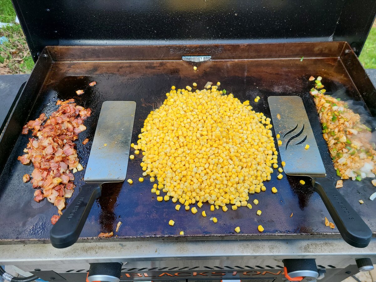 April 22, 20223 yr 1 hour ago, Imp81318 said: More information please! I’m going to Mexican-themed cookout tonight. I was planning to take chips and homemade salsa, but this also sounds like a possibility… its pretty simple. original recipe was to fry up 3/4 to a pound of chopped bacon untill it was pretty much done, then move it over and fry a 2lb frozen bag of corn in the bacon grease, then combine it and add some tequila lime seasoning and fry it for a few more minutes. i added some onion and jalapenos to it and used a makeshift taco seasoning instead of the one he used. heres the video i watched. warning, its basically a commercial for blackstone products