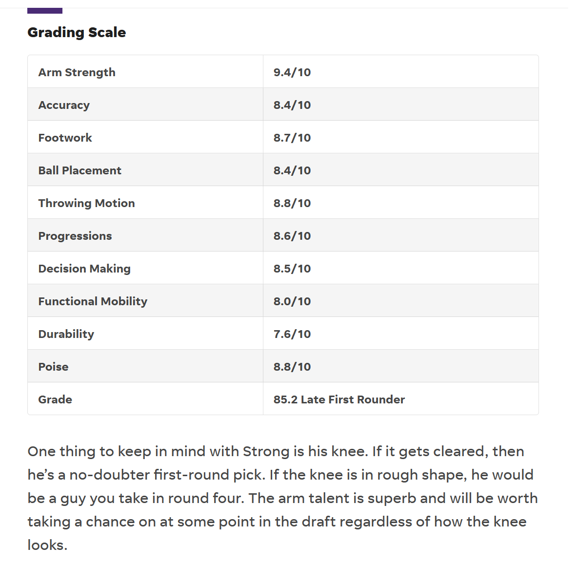 January 18, 20223 yr Strong has the best deep ball in the draft , he is just a statue back there though , I don’t see Lock , I said months ago , Bledsoe would be my comp .