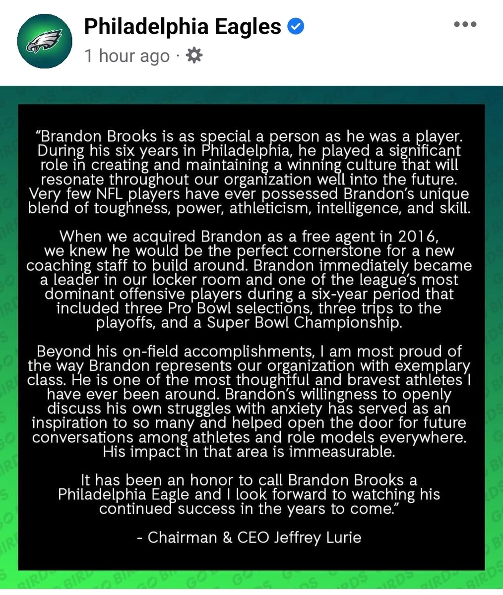January 26, 20223 yr Congrats on a great career Brandon, Good luck with all your future ventures.. Eagles now have an extra $24 Mill in Cap space this season, I see the FO signing a top tier safety, CB, LG & WR.. Eagles to own the NFC Least this year....