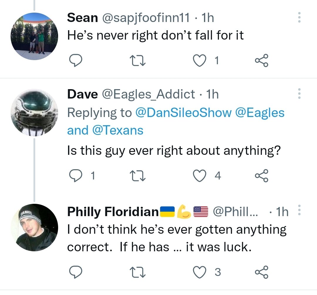 March 14, 20223 yr 12 hours ago, nipples said: When have the eagles ever had 3 firsts in a single draft? This is unprecedented. First off you would have to assume that Watson would be willing to come here and waive his NTC something he’s already allegedly refused to do. Then you have to assume the Eagles will outbid other teams and that’s something they haven’t done either. You also have to expect them to redo his contract and that something salary wise they can’t accomplish easily at the moment. In the end if they get him he’s definitely an upgrade, but I still worry about the overall cost, because frankly he’s not enough to get them over the hump.