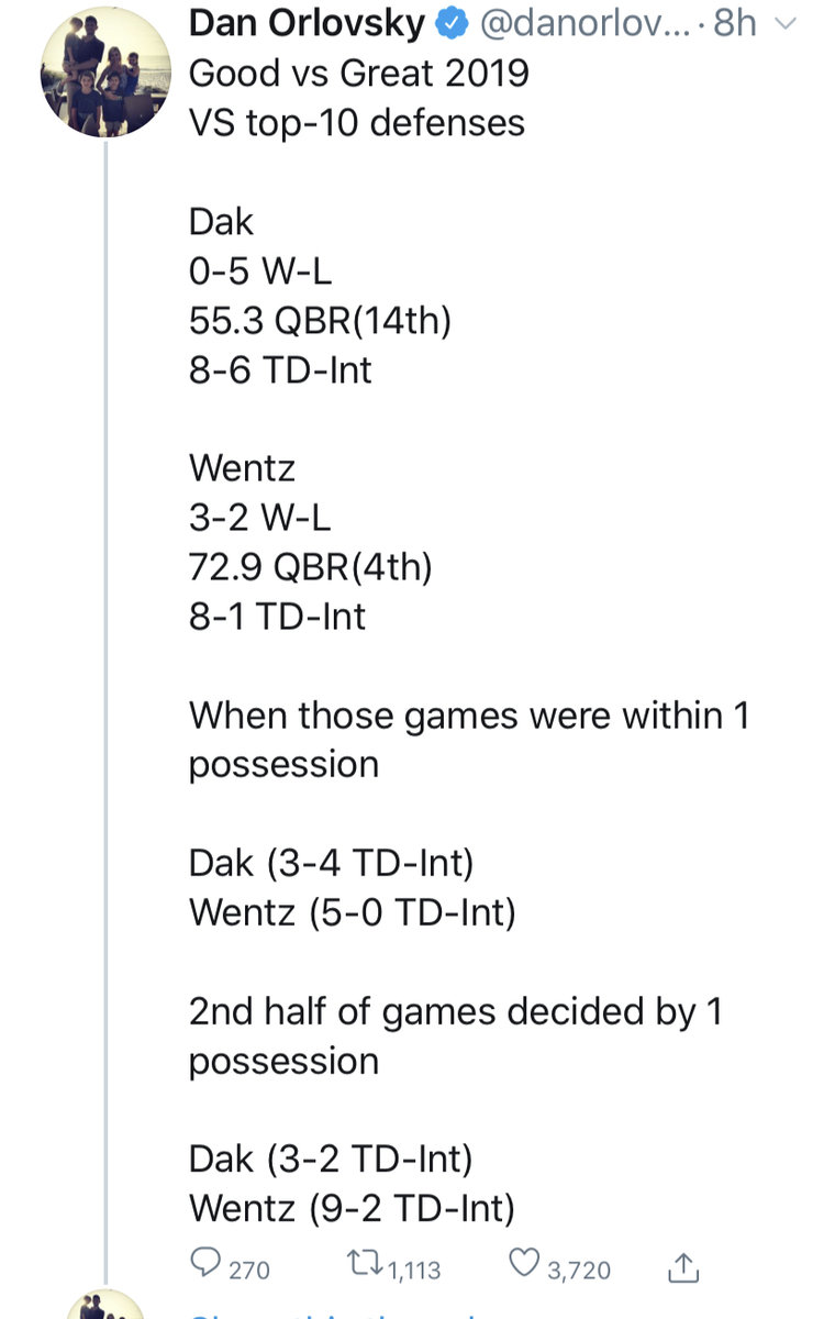 May 11, 20205 yr Dak does not miss games, Wentz does, a lot. A huge factor when comparing their relative worth to a team.