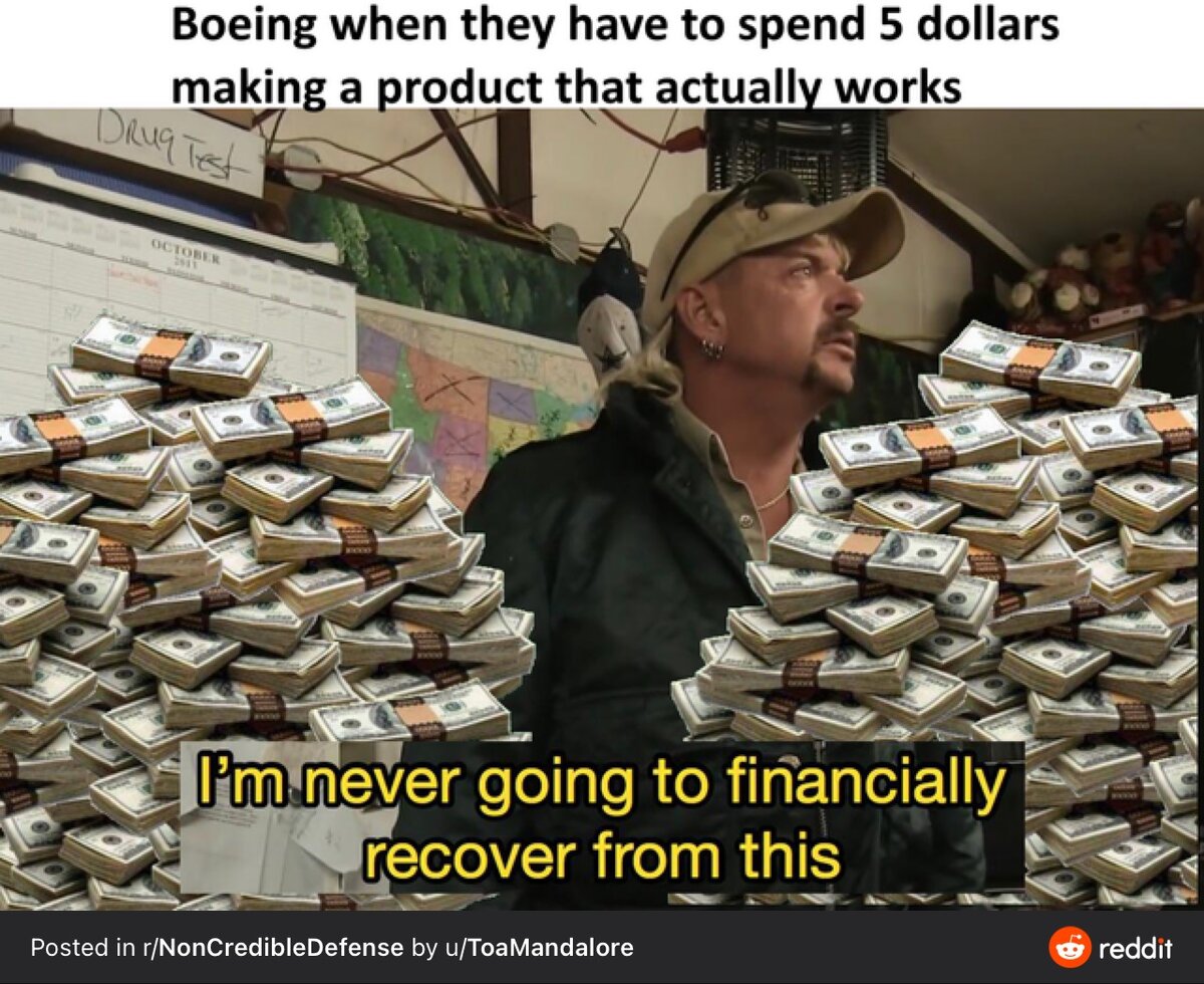 March 1, 20241 yr Former Boeing employee sounds alarm on MAX planes that were manufactured starting 2017-2018. He refuses to fly on them. Supply chain problems, evolved into production problems... Boeing just wanted to keep shipping planes out to keep up with demand. Also a severe lack of oversight. https://www.politico.com/news/magazine/2024/02/26/former-boeing-employee-speaks-out-00142948 Quote I have always had the greatest respect for the airplane products that The Boeing Company makes. My family was involved in it and my relatives. I had no reason ever to doubt it. And then I started working in the factory. I had been around airplanes my whole career. I flew airplanes in the Navy. You go into the production environment, and you’re like, "Oh, my God, I had no idea it was this complex.” It’s stunning how complex it is. At first, I didn’t understand how all that came together. And it gave me a great respect for the people that were building the plane — it’s incredibly impressive to see. And then everything started to change in 2017 and into 2018. We started having problems in our supply chain with the engines. And then the next thing you know, we started having problems with all kinds of parts. We were having hundreds of people doing out of sequence work [where parts from previous stages still needed to be fixed]. And we had tests that were being performed that were not being passed properly; one shift would try to get it done and they couldn’t get it done, so they’d leave notes for the next shift to come in. This is not how planes should be built. It was so bad in 2018 — we didn’t have engines on many of the planes and so they put these big concrete blocks on the engine pylons so the plane wouldn’t tip. Kind of an important part of the plane, right? A major warning bell that something’s not right. But they kept increasing production rate and so we kept getting further and further behind. So all of 2018 was just a chaotic disarray type of environment. And by the way, where the hell is the FAA? FAA had no presence in the factory. And it really irritates you because right down the road, literally 20 minutes down the road, is the Northwest headquarters for the FAA. There’s over 2,000 employees that work at that site and yet, in the busiest factory in the world 20 minutes down the road, there’s four or five employees. That’s not enough to monitor the restaurant operations at the site.