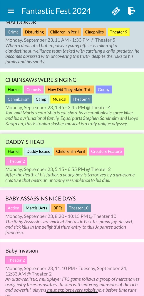September 24, 20241 yr Finally have a chance to post from the festival. My favorite so far was Chainsaws Were Singing. Kind of like if Monty Python made Texas Chainsaw Massacre into a musical. Quick summaries of what I saw today and my schedule for tomorrow:
