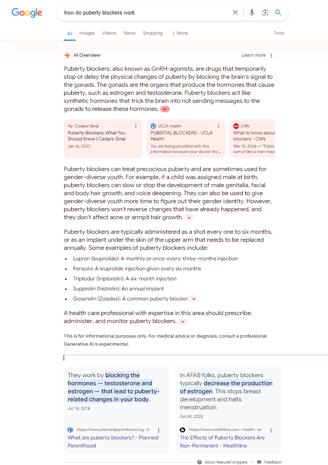 June 12, 20241 yr Author 1 minute ago, we_gotta_believe said: Absolutely not for surgeries. That's an irreversible course of action. Less sure on puberty blockers, if it's something that is easily reversible and has no long term consequences then I don't see the harm, but I'd look to actual legit organizations like AAP to provide guidance, not your little group of fundie docs who thinks gays are the devil and shouldn't be allowed to be parents. So you don't know whether longterm use of puberty blockers is reversible or not?