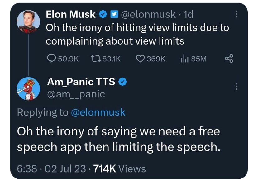 July 4, 20232 yr 33 minutes ago, Boogyman said: Limiting views on a platform that depends on advertising revenue to make money? Am I missing an angle here? Reportedly has to do with a delayed migration off Google cloud platform. Couldn't or didn't pay the bill. Needed to migrate off. Didn't get it all done in time. Now they need to minimize the usage to avoid further fees they can't afford. Related: Google search has removed a huge chunk of Twitter posts from its results.