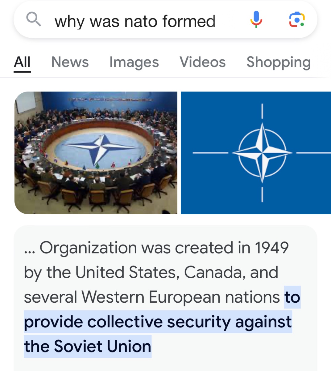 March 4, 20241 yr NATO essentially became an organization that goes after terrorism instead of communism after 9/11. I guess you could say it’s also tried to slow down Russia, although 2008 - Russia invades Georgia 2014 - Russia invades Crimea 2022 - Russia invades Ukraine