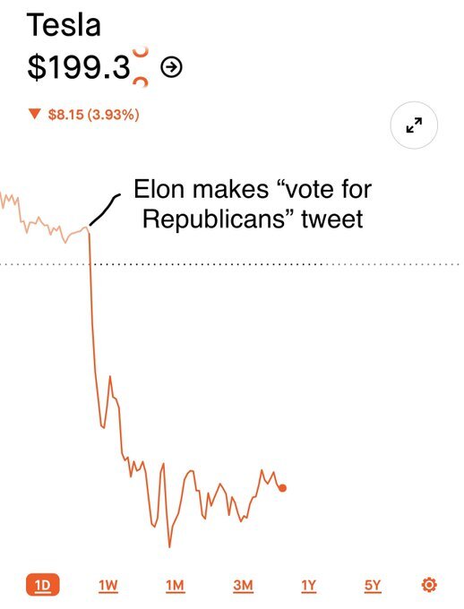 November 7, 20223 yr 23 minutes ago, VanHammersly said: Take a breath, dude. Meanwhile... Dude's actively chasing away his entire customer base on two fronts. It’s 5d chess. He’s doing it to get the Trumpbots to be all for EVs. It’s brilliant