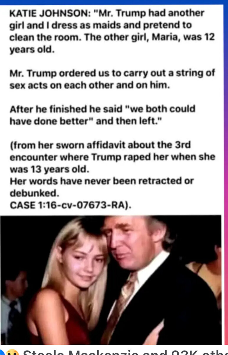 July 25Jul 25 5 minutes ago, MidMoFo said:Would having sex with underage girls qualify as mentally ill and allow for forced institutionalization?Asking for a friend.You sick F!!!
