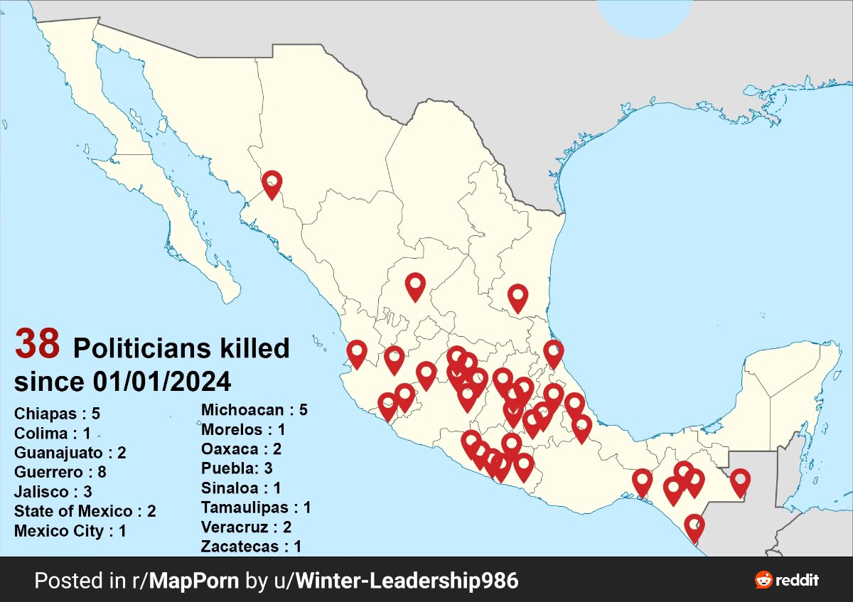 June 4, 20241 yr 11 hours ago, DaEagles4Life said: Mexico's current election season has become the deadliest in its modern history, with the assassination of yet another candidate for the general elections on Friday after Jorge Huerta Cabrera, running for a council seat in Izucar de Matamoros, Puebla state, was murdered at a political rally. Cabrera is the 37th candidate killed ahead of the election slated for Sunday. https://english.almayadeen.net/news/politics/another-mexican-candidate-killed--raising-figure-to-37