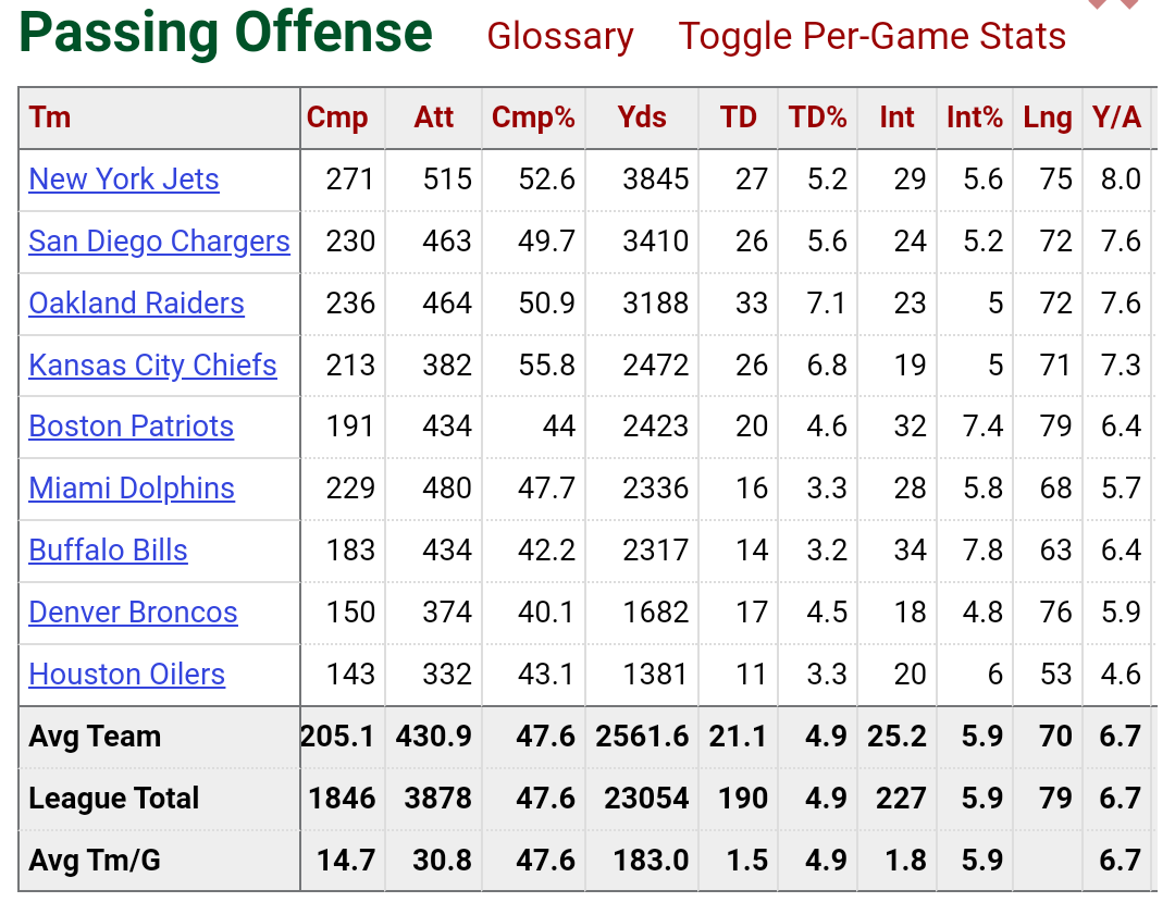July 22, 20223 yr 7 hours ago, ndelaware said: Namath's career - 50.1 % completions, 173 TDs, 220 INTs Guessing you don't understand football back then