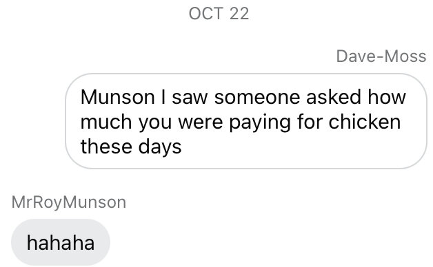 October 25, 20213 yr 3 minutes ago, Dave Moss said: I never entered that conversation regarding the price of chicken
