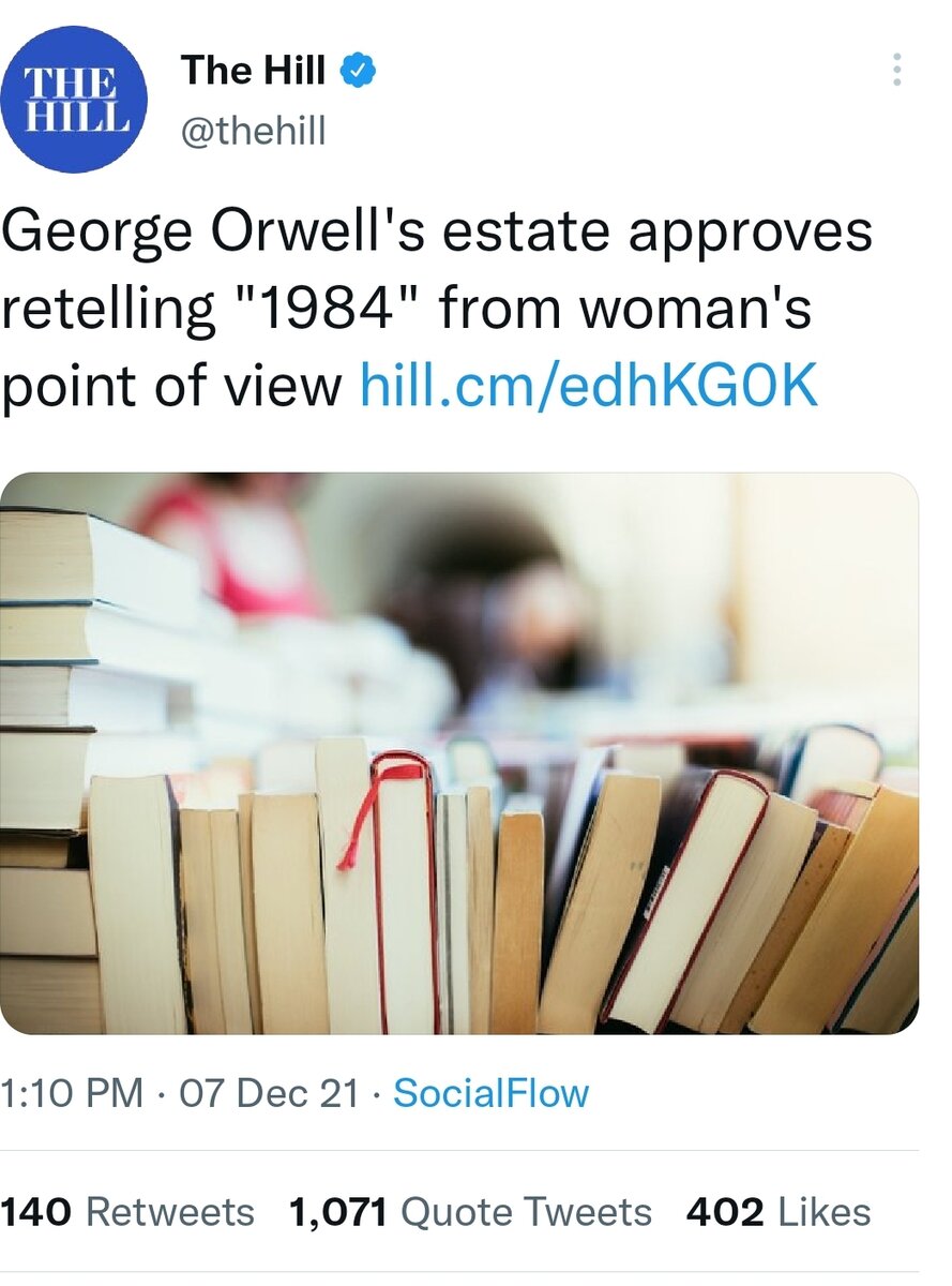 December 14, 20213 yr Doesn't seem like it: https://www.theguardian.com/books/2021/dec/07/feminist-retelling-of-nineteen-eighty-four-approved-by-orwells-estate?CMP=Share_iOSApp_Other