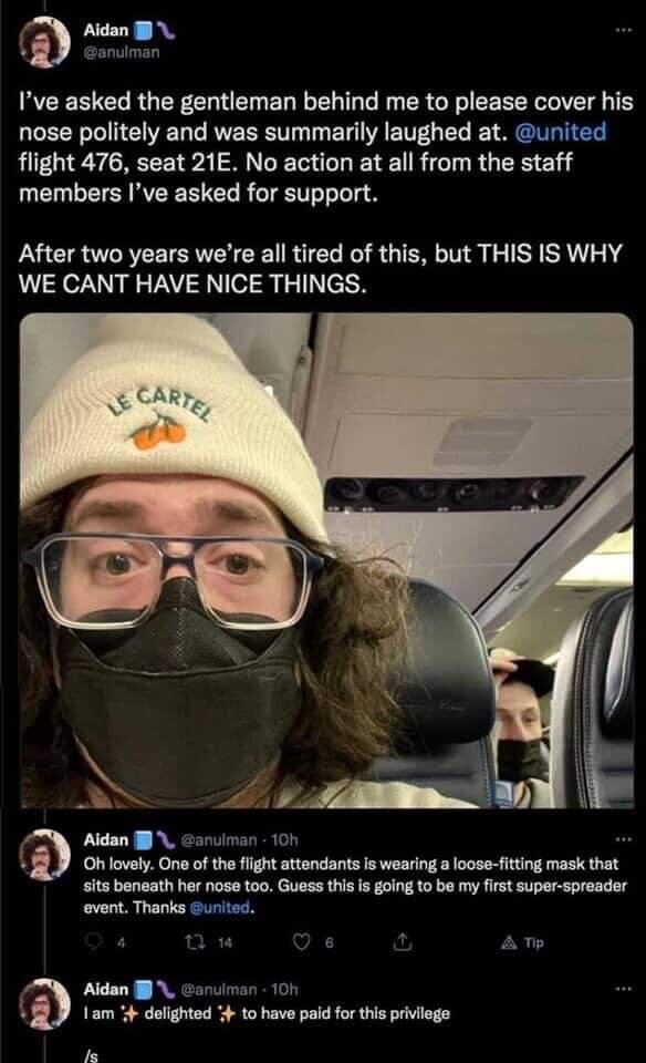 December 21, 20213 yr 8 minutes ago, JohnSnowsHair said: My understanding is that air in a plane cabin is regularly cycled out, so once it's pressurized you're not rebreathing the same air. I could be wrong on that. And it certain doesn't guarantee anything. But if that's accurate it should help reduce what would otherwise be very much a super spreader situation. That is correct.