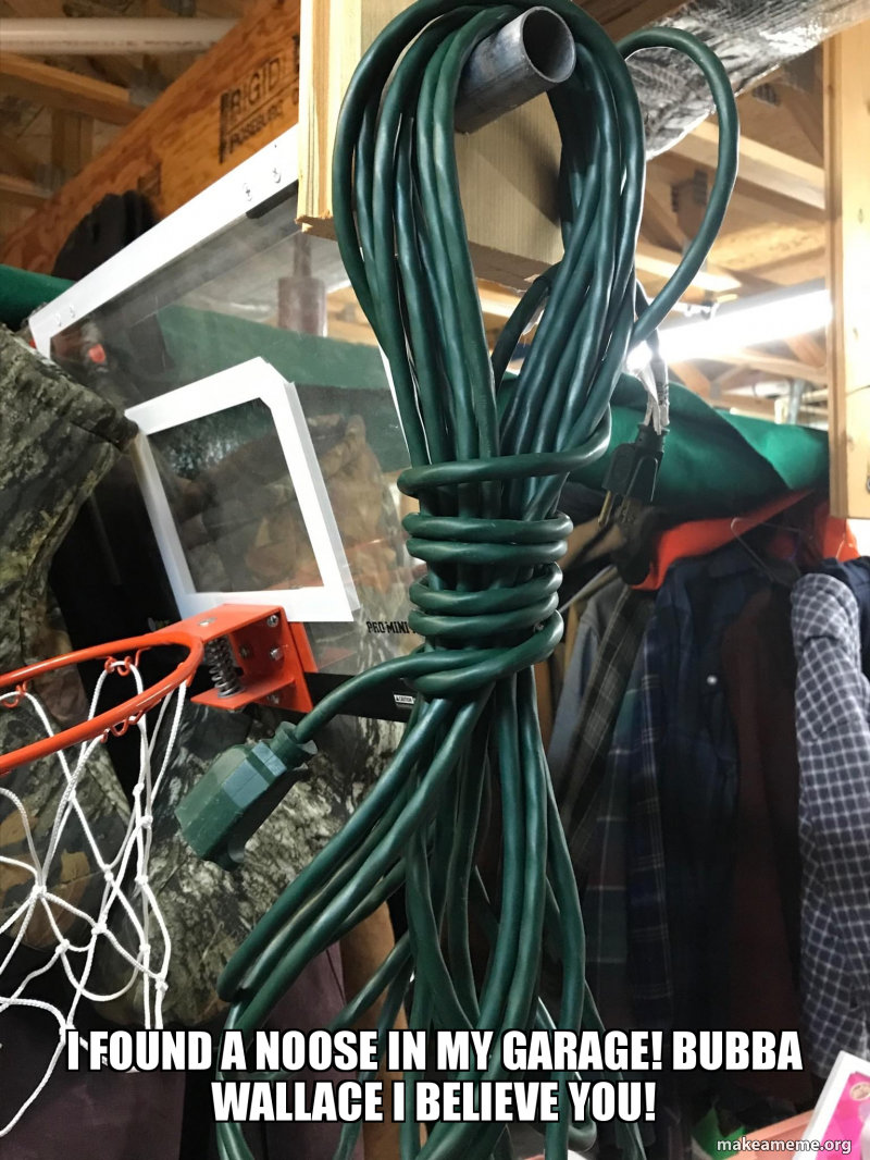 June 24, 20205 yr 21 minutes ago, Tnt4philly said: Yeah, I’m not sure Thant he "garage pull” found in the NASCAR garage was a simple loop with a knot like that. Though blurry, the pics I have seen show a much bigger slip type knot. Someone went out of the way to fashion the garage pull ton look like a noose. That's just a handle. Nooses tighten as they are pulled and are much much bigger. That looks like a simple loop handle to shut the door.