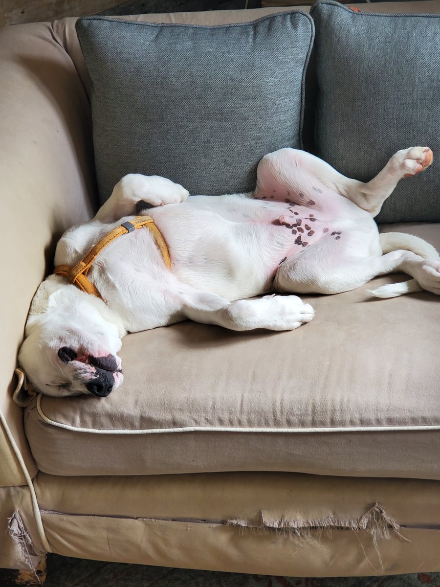 June 26, 20205 yr 2 hours ago, Dawkins 20 said: What a beauty. I can definitely see the Husky mix. Oh, and I think we've hijacked this thread I love the way this thread has been hijacked. I have better pics of them together, but my phone is being weird. Here are our 2 sheet stains. The 2nd is how the Frenchie sleeps.