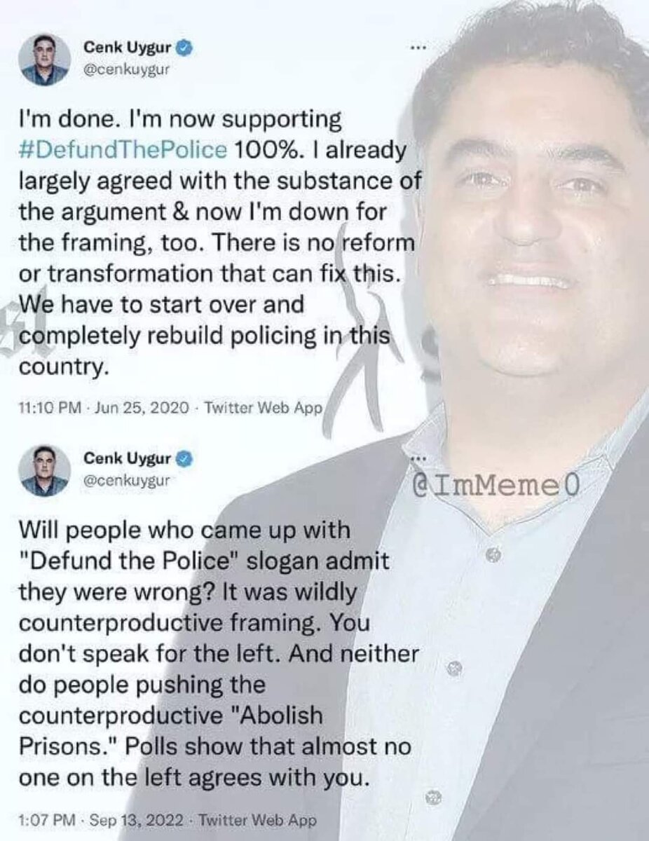 September 17, 20223 yr I know a woman who said on social media to defund the police, but then also got offended when her friends told her to take precautions before riding her bike on dark bicycle paths off of streets at night, because victims shouldn't have to change their behavior. I don't know how many thieves and rapists read her posts and went straight because of it, though.