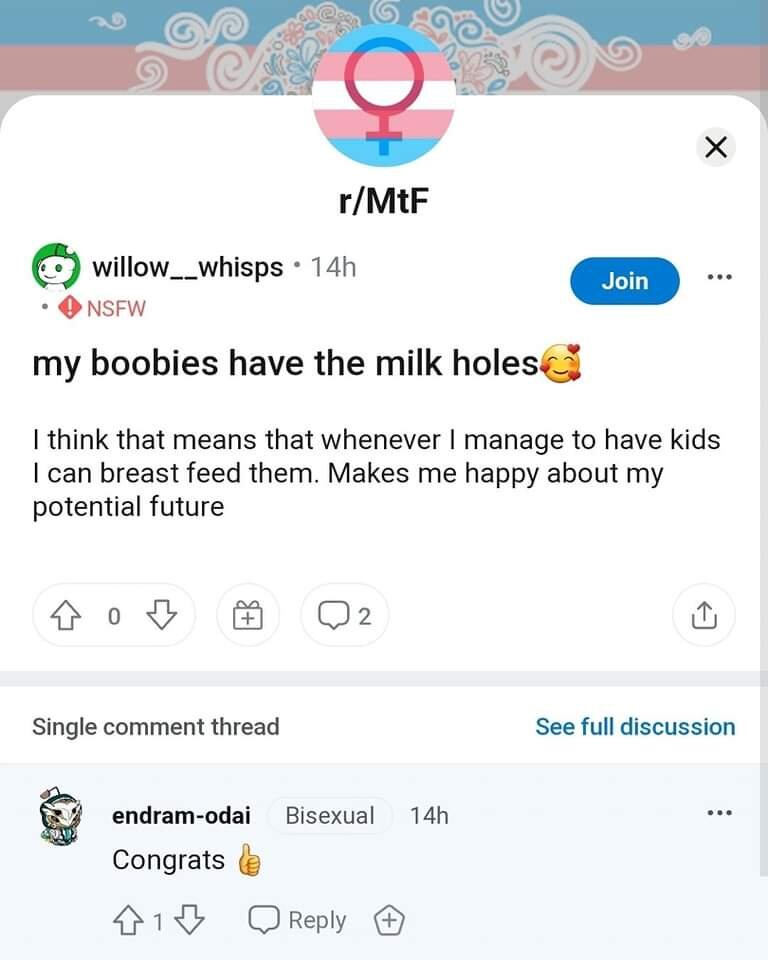 January 13, 20233 yr ...and if they stick a tomato juice popsicle up their surgically created meat wallet, and wait for it to melt, they can menstruate too!