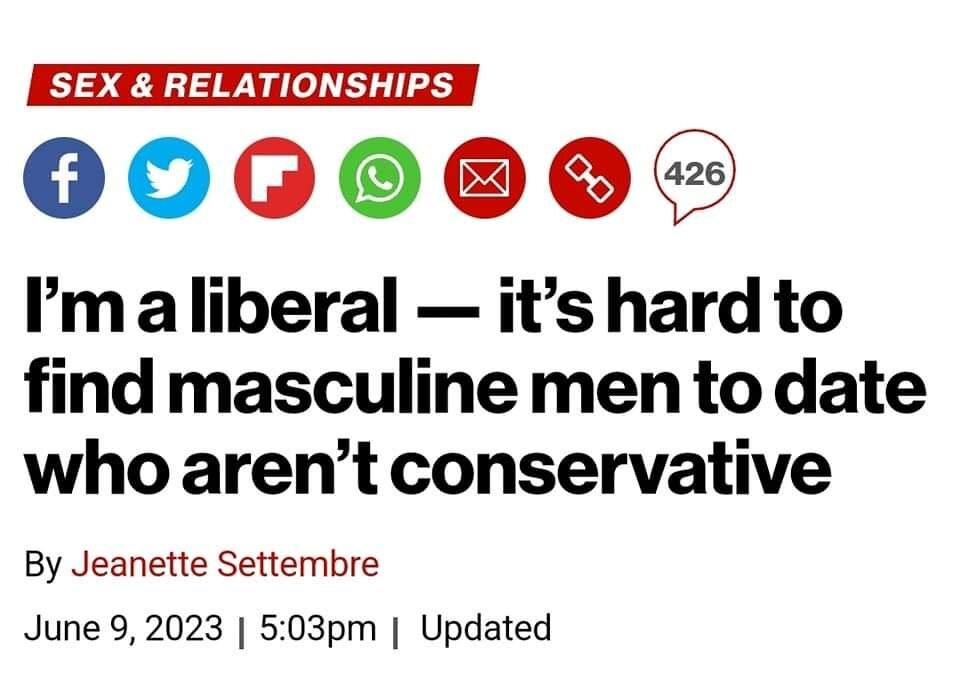 June 13, 20232 yr On 6/11/2023 at 8:18 PM, iladelphxx said: No kidding? I guess all that data about testosterone being linked to political affiliation might be true.