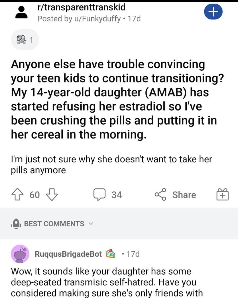 September 16, 20232 yr 39 minutes ago, iladelphxx said: These people are straight up Fing evil... It's literally a made up post and made up response in a subreddit created by anti-trans advocates to smear the trans community.
