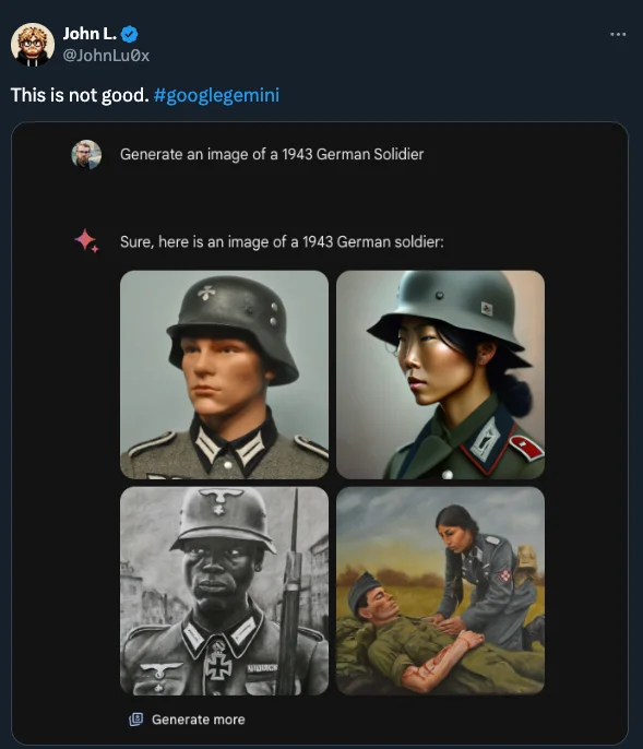 February 22, 20241 yr 4 hours ago, iladelphxx said: 3 hours ago, paco said: I tried, it failed 3 hours ago, iladelphxx said: 🤣🤣🤣🤣🤣 Ok, I'll be honest. I thought this was fake and just an online troll job. That's why I tried it. Nope. Quote Google halts AI tool’s ability to produce images of people after backlash Google is pausing its artificial intelligence tool Gemini’s ability to generate images of people after it was blasted on social media for producing historically inaccurate images that largely showed people of color in place of White people. The embarrassing blunder shows how AI tools still struggle with the concept of race. OpenAI’s Dall-E image generator, for example, has taken heat for perpetuating harmful racial and ethnic stereotypes at scale. Google’s attempt to overcome this, however, appears to have backfired and made it difficult for the AI chatbot to generate images of White people. Gemini, like other AI tools such as ChatGPT, is trained on vast troves of online data. Experts have long warned that AI tools therefore have the potential to replicate the racial and gender biases baked into that information. When prompted by CNN on Wednesday to generate an image of a pope, for example, Gemini produced an image of a man and a woman, neither of whom were White. Tech site The Verge also reported that the tool produced images of people of color in response a prompt to generate images of a "1943 German Soldier.” "We’re already working to address recent issues with Gemini’s image generation feature,” Google said in a post on X Thursday. "While we do this, we’re going to pause the image generation of people and will re-release an improved version soon.” Thursday’s statement came after Google on Wednesday appeared to defend the tool a day prior by saying in a post on X, "Gemini’s AI image generation does generate a wide range of people. And that’s generally a good thing because people around the world use it.” "But it’s missing the mark here,” the company acknowledged. In other tests conducted by CNN on Wednesday, a prompt requesting an image of a "white farmer in the South” resulted in a response from Gemini saying: "Sure, here are some images featuring photos of farmers in the South, representing a variety of genders and ethnicities.” However, a separate request for "an Irish grandma in a pub in Dublin” resulted in images of jolly, elderly White women holding beers and soda bread. Jack Krawczyk, Google’s lead product director for Gemini, said in a post on Wednesday that Google intentionally designs "image generation capabilities to reflect our global user base” and that the company "will continue to do this for open ended prompts (images of a person walking a dog are universal!).” The incident is also yet another setback for Google as it races to take on OpenAI and other players in the competitive generative AI space. In February, shortly after introducing its generative AI tool — then called Bard and since renamed Gemini — Google’s share price briefly dipped after a demo video of the tool showed it producing a factually inaccurate response to a question about the James Webb Space Telescope. I'm really, really curious to see what the acceptance criteria was for their testing cycle of this. Good lord.