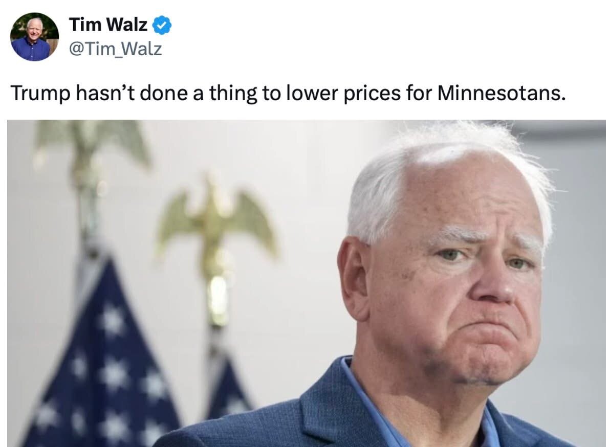 September 23Sep 23 Dude turns an $18 billion SURPLUS into a $6 billion DEFICIT, while raising taxes by $10 billion and then proceeds to lecture others about the economy? We fire Tim Walz next November and it won't be soon enough!