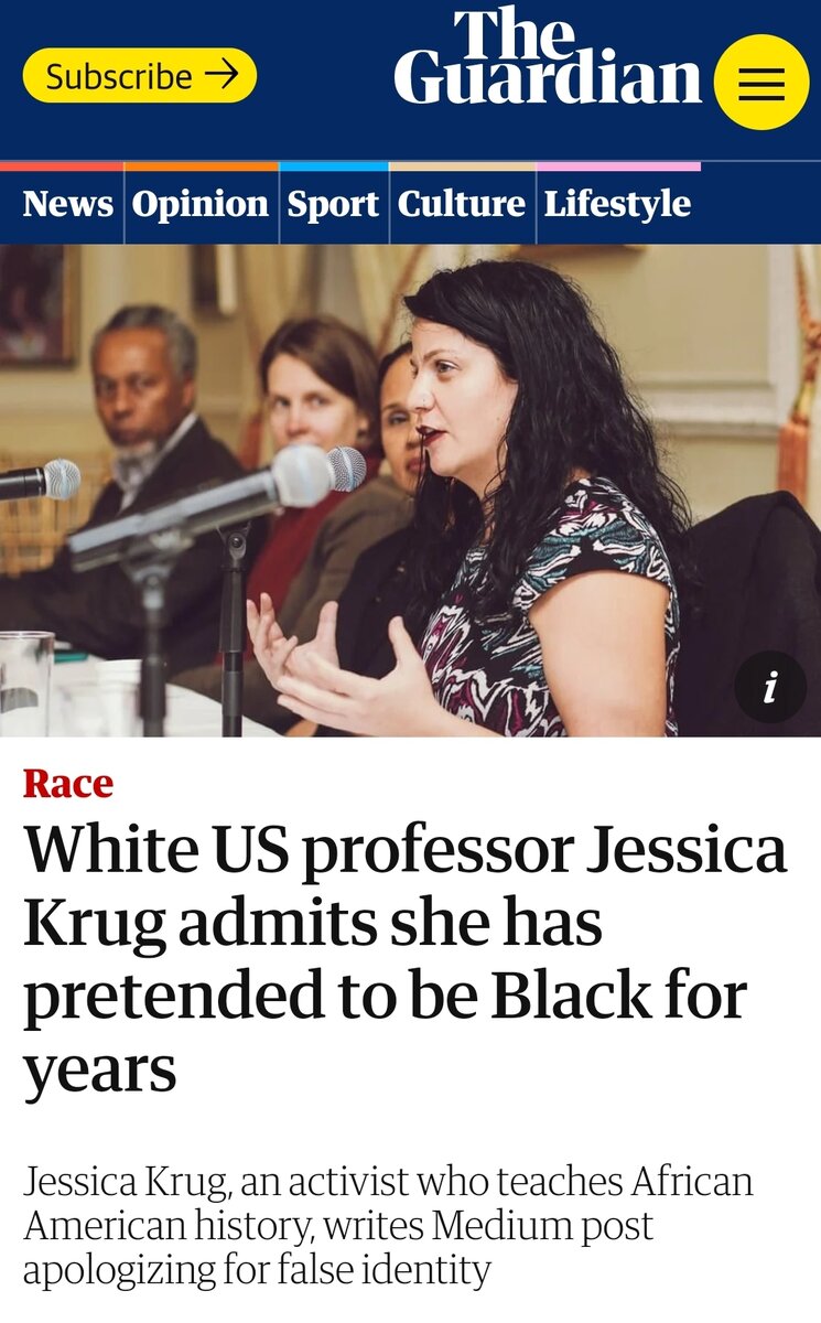 September 14, 20205 yr On 9/5/2020 at 12:46 AM, NOTW said: https://www.theguardian.com/world/2020/sep/03/jessica-krug-white-professor-pretended-black White professor of Black History pretended to be black. Move over, Rachel Dolezal. This is a very stable and sane individual!