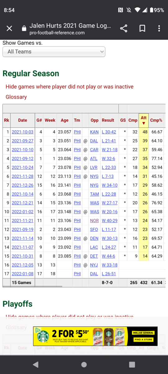 Look, I'm not a Hurts fan, I'm an Eagles fan. If Strong outplays him and is a viable franchise QB then great. I'll get right behind him. I didn't want the Eagles to take a QB in the first two rounds or sign one of the big names because of salary cap issues, needs across the team and because it was a weak QB class.