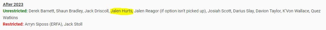 July 8, 20223 yr I do think there's a scenario here where Hurts does put the Eagles in a tough spot. He could improve, he could play well but not enough to be absolutely sure about him. At that point what do you do? Do you tag him and give yourself another year to come to a decision? Do you hope that he doesn't ask for a huge extension? And if you do extend him then you know you can add 2 more first round picks to this already promising roster. Or do you move on and roll the dice on a rookie?