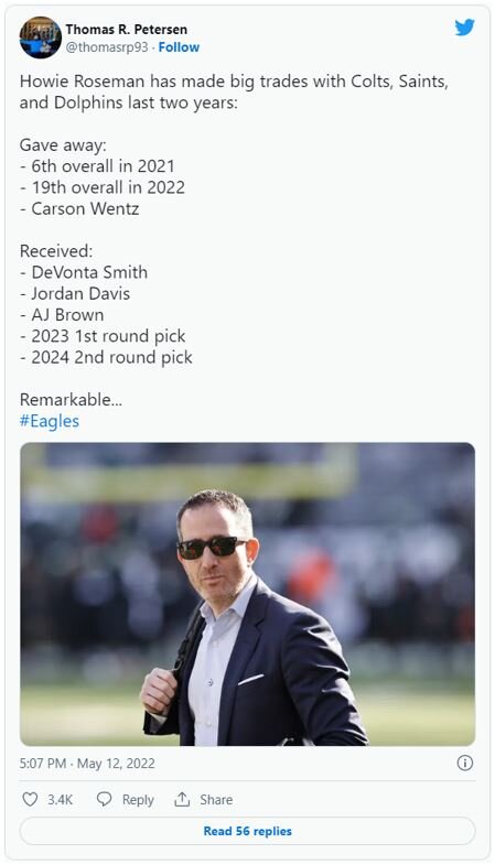 July 7, 20223 yr Howie has done very, very well of late. I hope he keeps it up. Answering the QB question this season is front and center, but Howie has given the Eagles the flexibility they'll need to do it. Great so far.